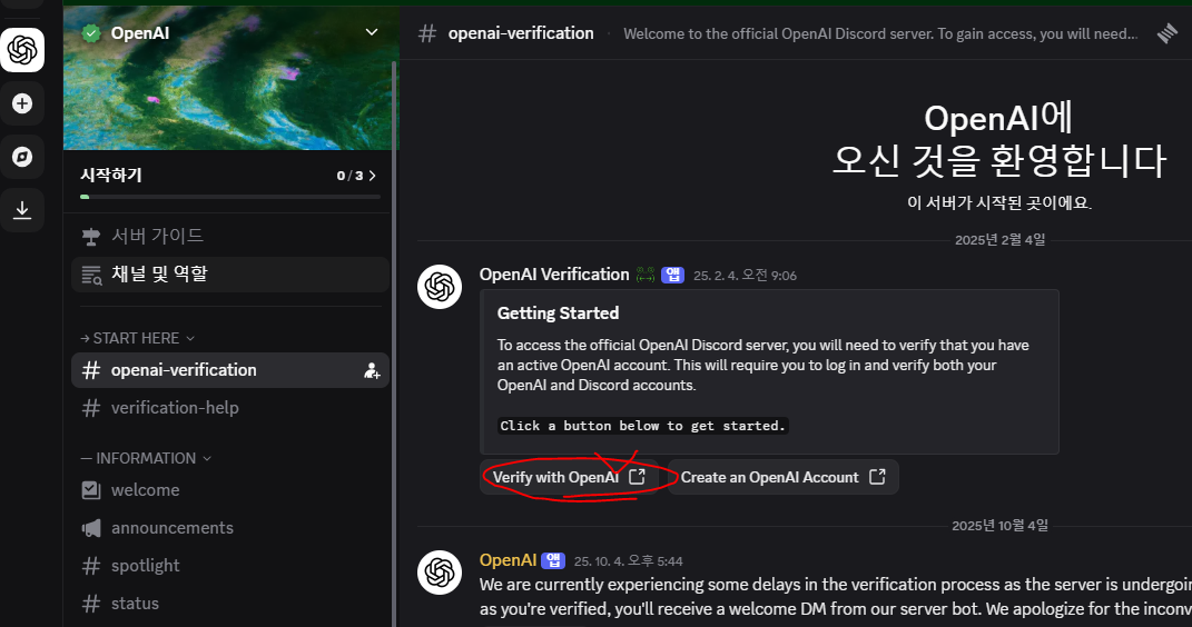 - OpenAI 디스코드 서버 접속: 구글에서 'OpenAI Discord'를 검색하거나 https://discord.gg/openai 링크를 통해 공식 서버에 접속합니다. 디스코드 계정이 없다면 간단하게 가입할 수 있습니다.